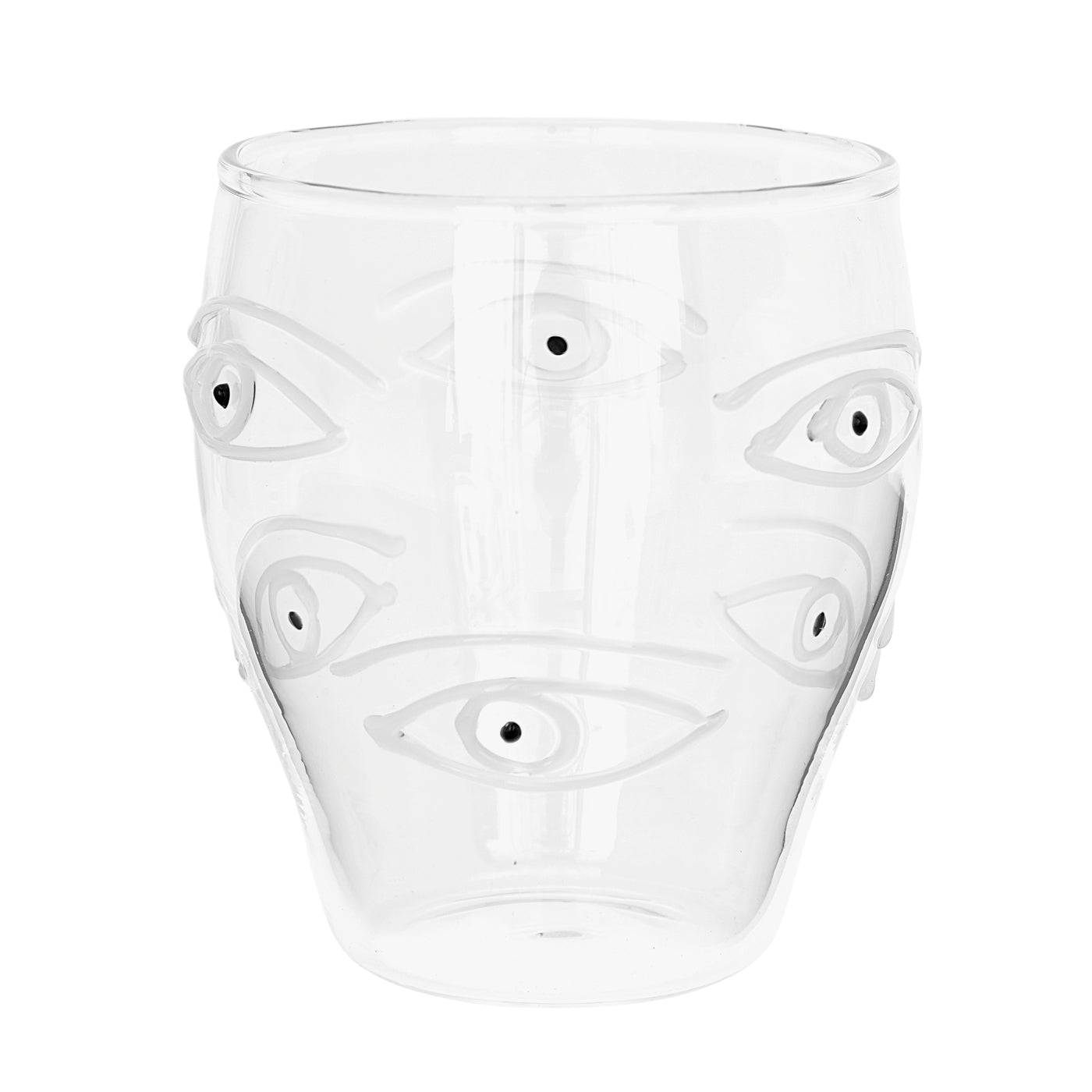 Our hand blown Oculus cocktail glasses are adorned with an array of gorgeous peepers. The eyes are applied during the glassblowing process by skilled artisans who apply the red hot strings of glass in alluring eye patterns. The surreal surprise your at-home bar needs, they're an equal treat at the table.